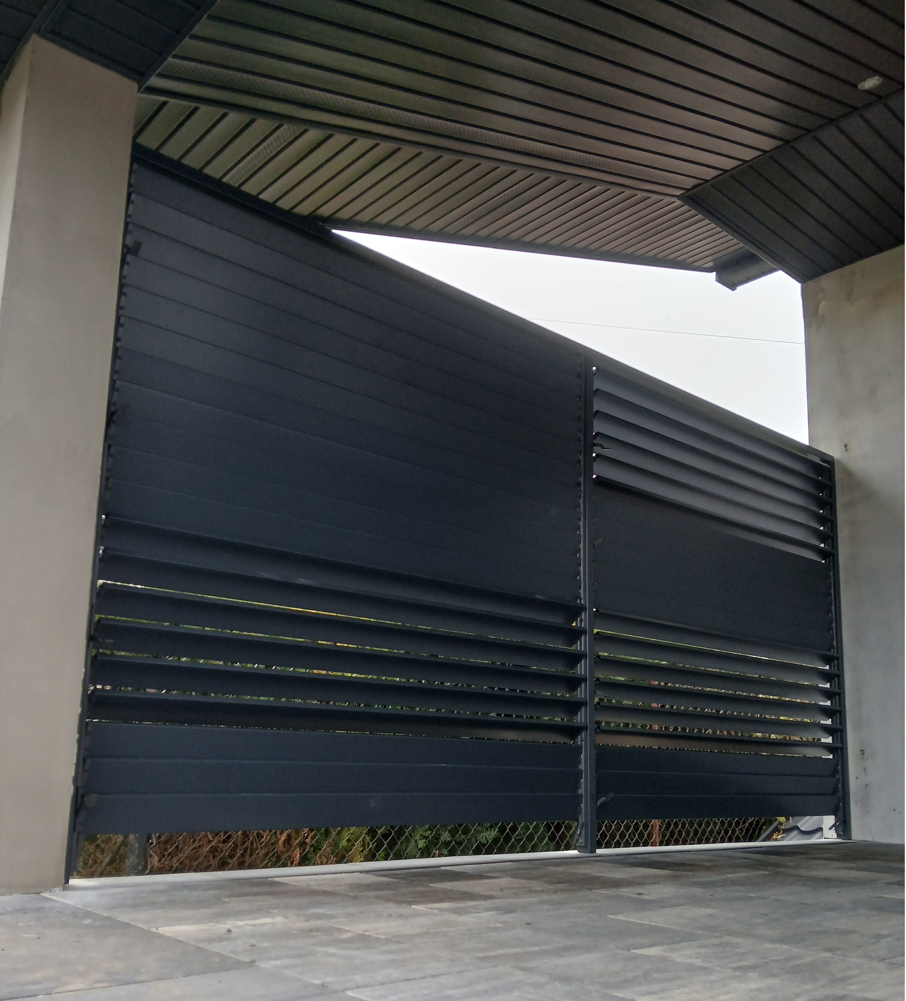 Żaluzje wykonywane są z wysokiej jakości profili metalowych o wymiarach 100 × 20 × 1,2 mm, co zapewnia im odpowiednią sztywność, stabilność oraz odporność na odkształcenia. Solidna konstrukcja gwarantuje długą żywotność nawet przy intensywnym użytkowaniu oraz w zmiennych warunkach atmosferycznych.